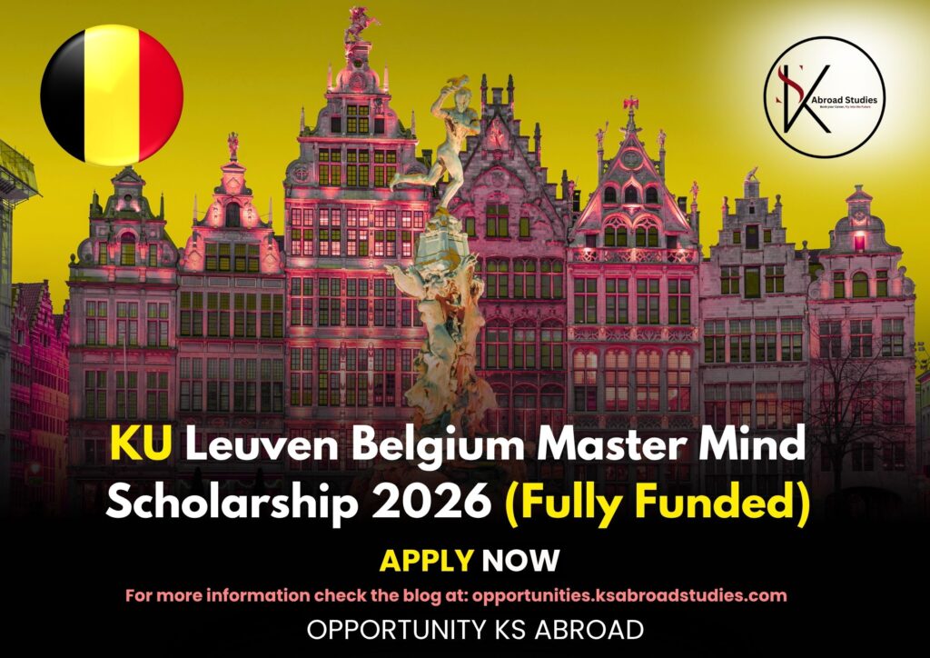 Applications are now open for the KU Leuven Master Mind Scholarship 2026–2027 in Belgium. This fully funded opportunity allows international students to pursue a Master’s degree at one of Europe’s most prestigious and oldest universities — KU Leuven, consistently ranked among the world’s top institutions.